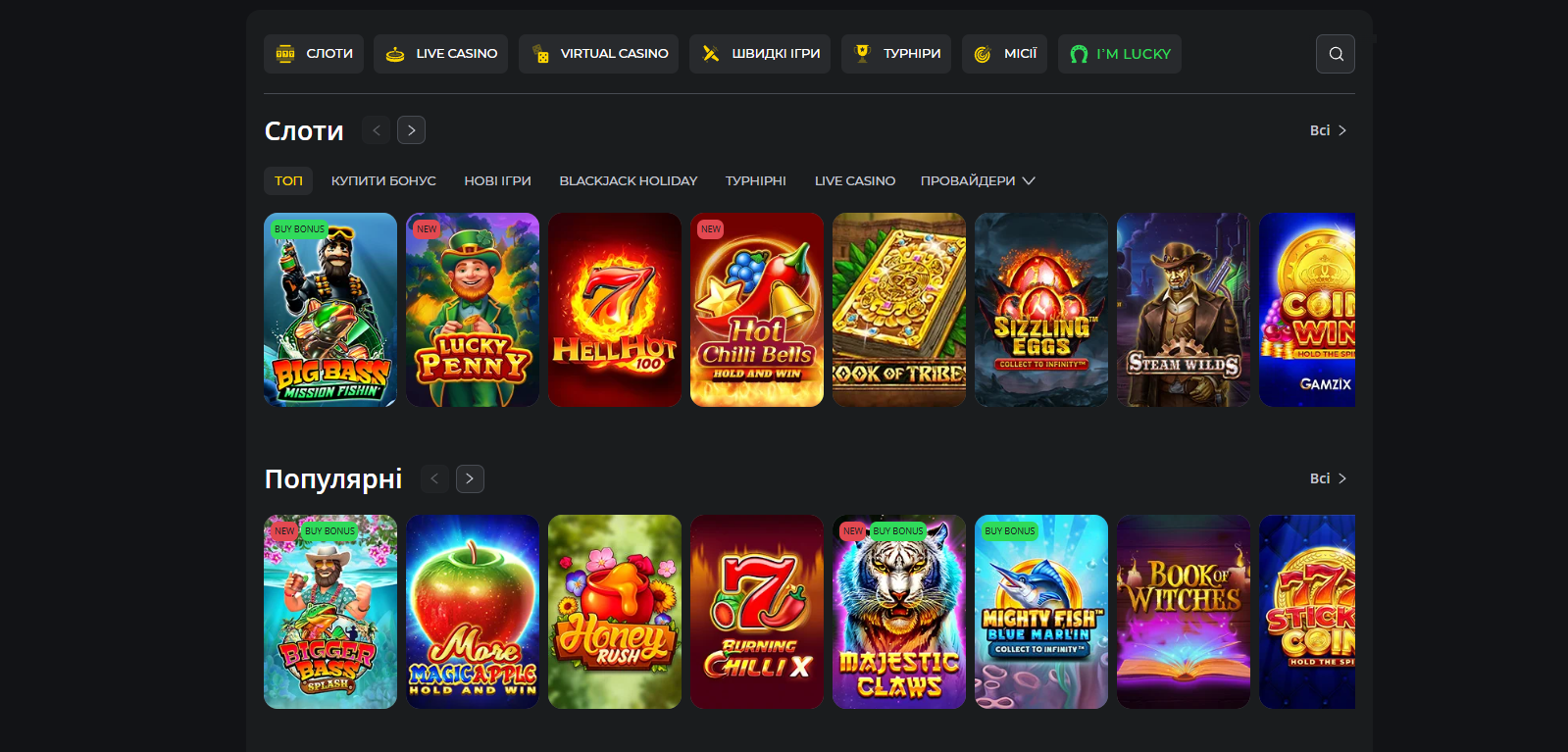 У категорії live‑ігор ресурс співпрацює з Evolution, Ezugi та Pragmatic Live. Дилери вітають українських гравців рідною мовою, що створює атмосферу локального клубу. Крім класичних столів, платформа транслює шоу‑ігри, такі як Crazy Time та Monopoly Live. Усі столи підтримують функцію «Bet Behind», завдяки якій новачок може спостерігати й робити ставки разом із досвідченими користувачами. Додаткова перевага — розділ статистики за останніми 500 раундами, що допомагає аналізувати тренди.
